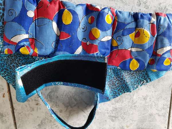 Ceinture est un paquet de plusieurs section de tissu de coton avec un adhésif de contact (« Velcro »), rempli de miettes de shungite.